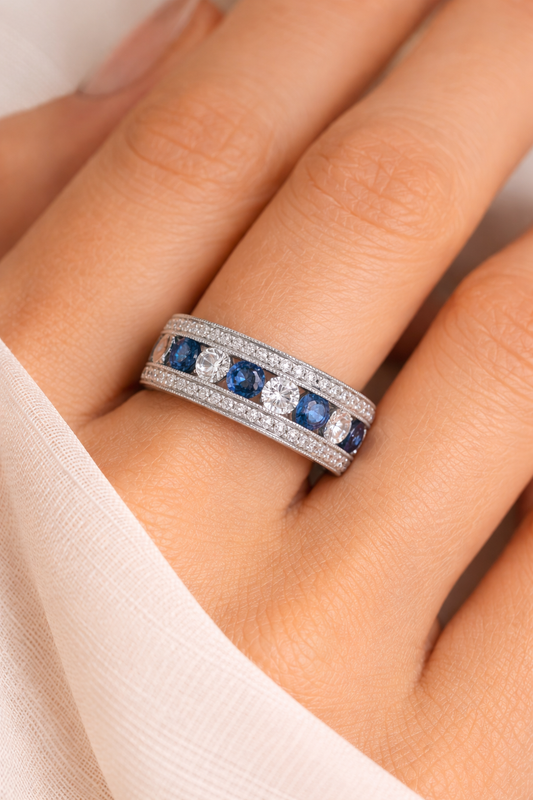 White Gold Sapphire and Diamond Ring