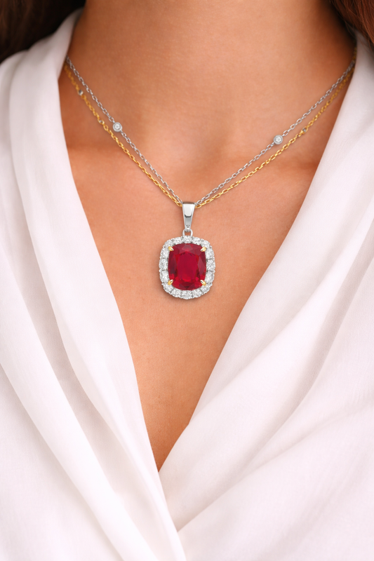 Platinum and Yellow Gold Ruby and Diamond Pendant