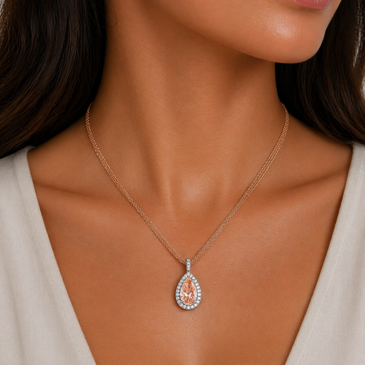 White and Rose Gold Pear Shape Lab-Grown Fancy Pink Diamond Halo Pendant