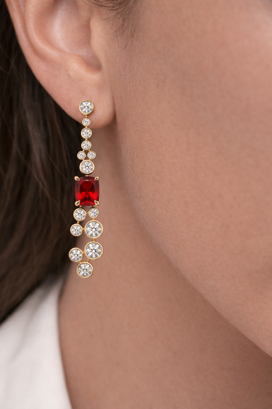 Yellow Gold Lab-Grown Ruby and Diamond Drop Earrings
