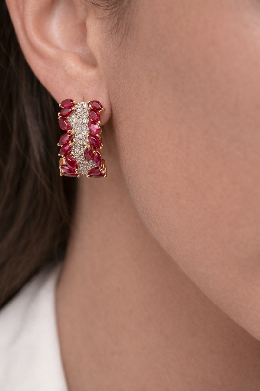 Rose Gold Ruby and Diamond Hoop Earrings