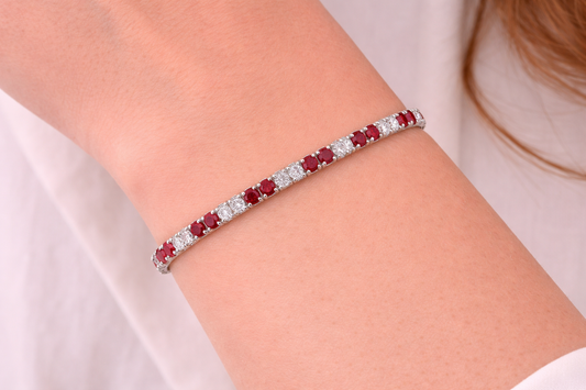 White Gold Lab-Grown Ruby and Diamond Flexi Bangle
