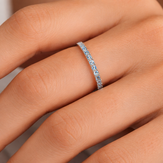 White Gold Pave Blue Topaz Stackable Ring