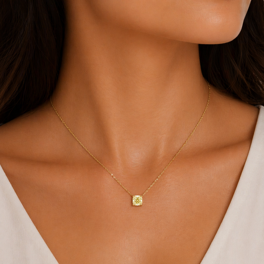 Yellow Gold Cushion Cut Fancy Yellow Diamond Pendant