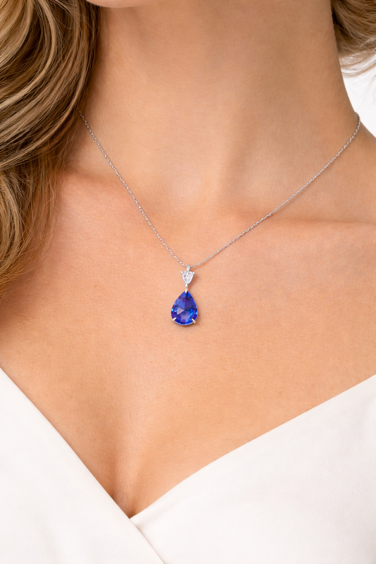 Platinum Pear Sapphire and Diamond Drop Necklace