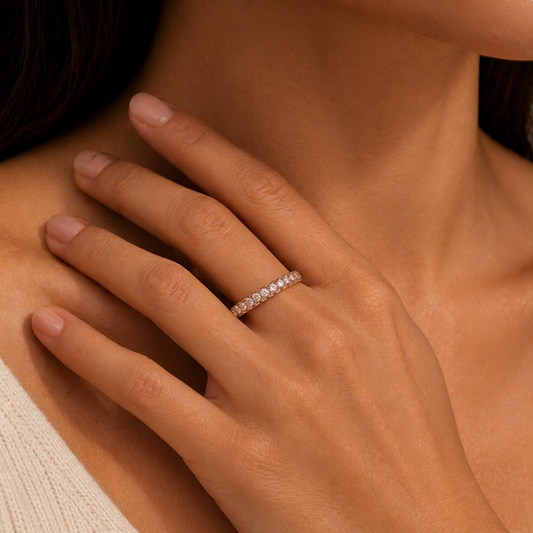 Rose Gold Three Row Pave Pink Diamond Ring