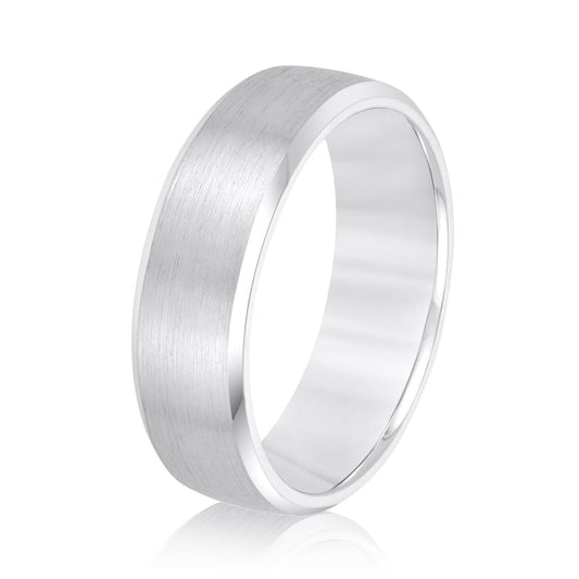 14K White Gold Men's 6MM Wedding Band With Satin Finish And High Polish Beveled Edges