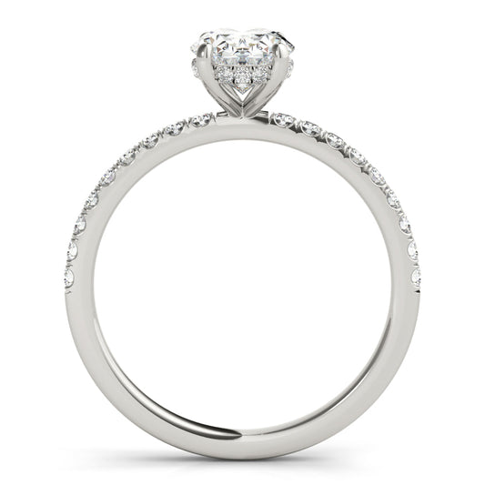 14K White Gold Oval Diamond Hidden Halo Pave Accented Engagement Ring