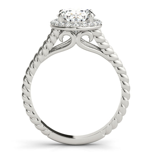 14K White Gold Oval Diamond Halo Engagement Ring With Braided Shank (1.10ctw)