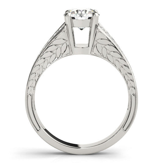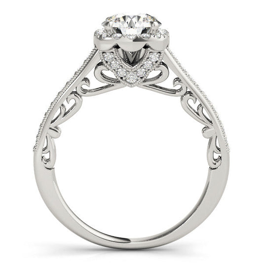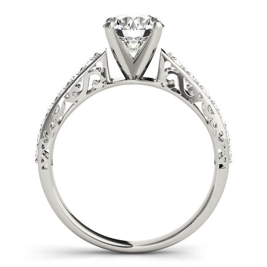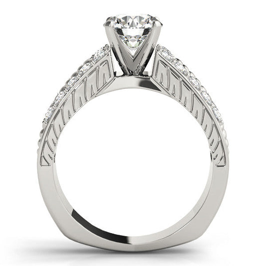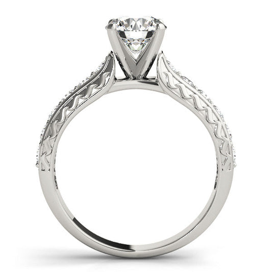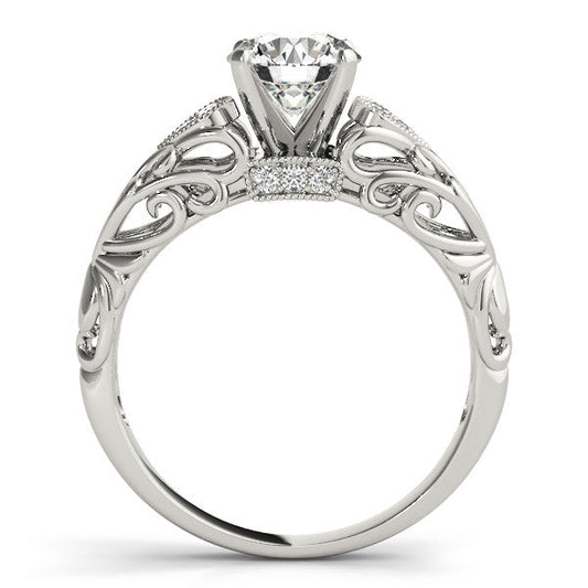 14K White Gold Round Brilliant Diamond Antique Inspired Engagement Ring With Pave Accents