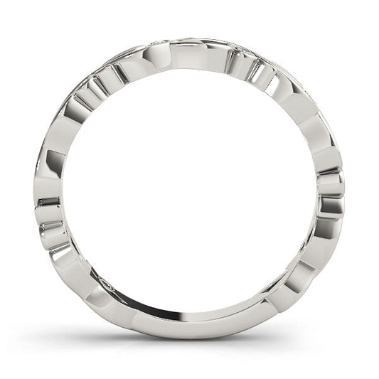 14K White Gold Round Brilliant Diamond Accented Vine Inspired Wedding Ring (.06ctw)