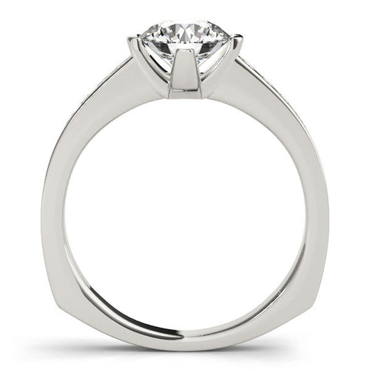 14K White Gold Round Brilliant Diamond Bar Set Engagement Ring With Channel Set Accents (1.25ctw)