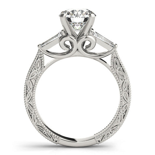 14K White Gold Round Brilliant Diamond Antique Three Stone Baguette Engagement Ring (1.33ctw)
