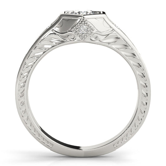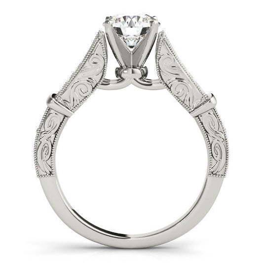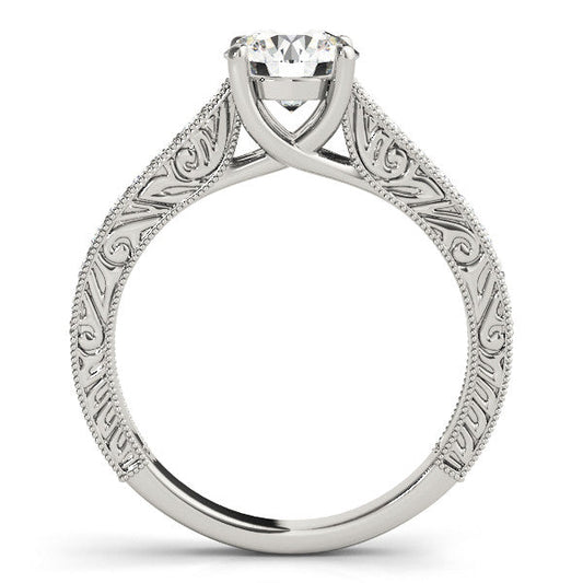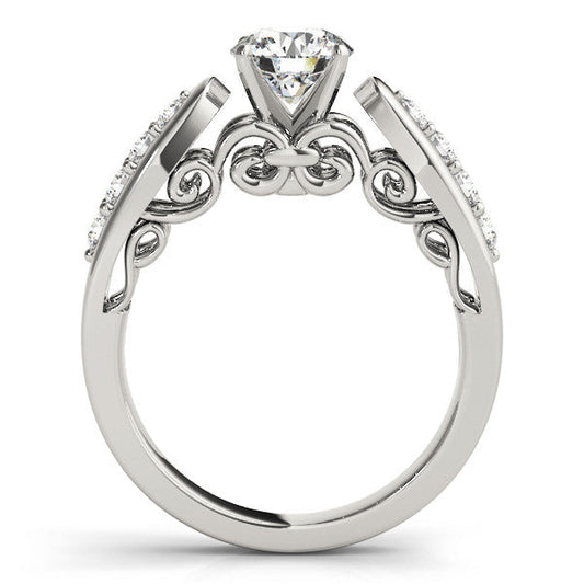 14K White Gold Round Brilliant Diamond Antique Inspired Engagement Ring With Pave Accents