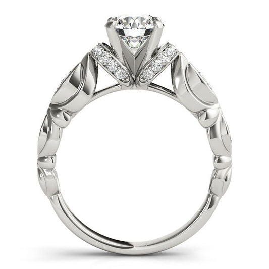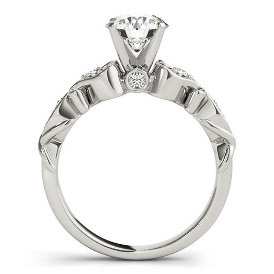 14K White Gold Round Brilliant Diamond Antique Inspired Twist Engagement Ring With Pave Accents