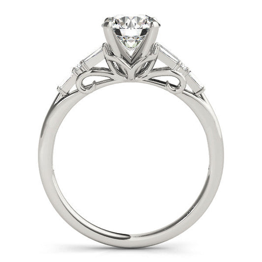 14K White Gold Round Brilliant Diamond Baguette Basket Engagement Ring With Channel Set Accents