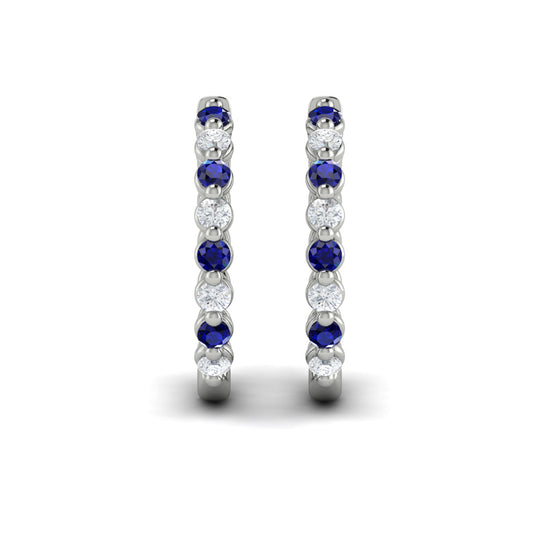 Diamond and Blue Sapphire Twist Hoop Earrings