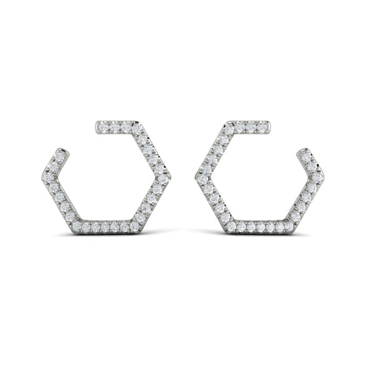 Diamond Forward-Facing Honeycomb Open Hoop Earrings
