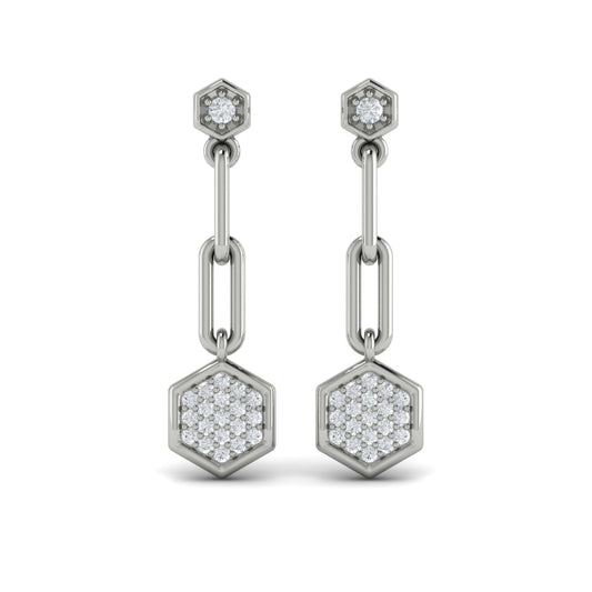 Diamond Honeycomb Link Long Drop Statement Earrings