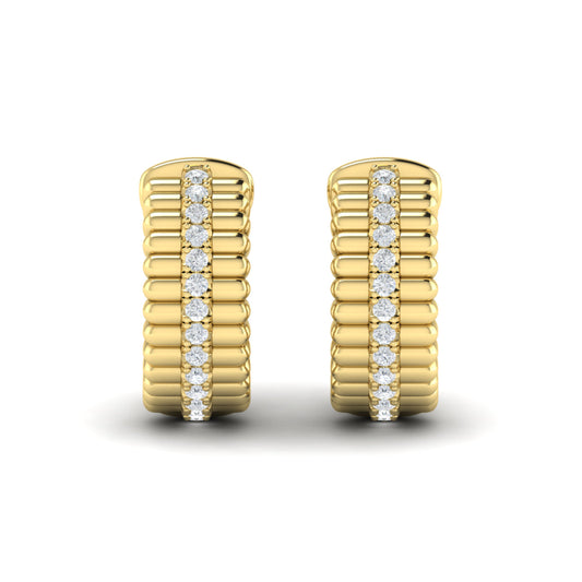 Fluted Huggie Earrings with Center Diamonds