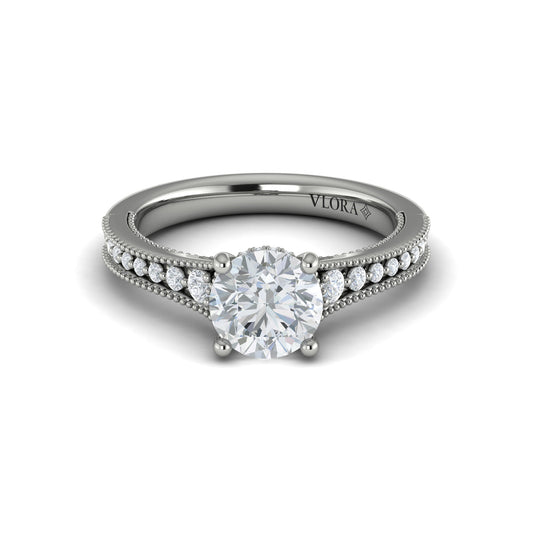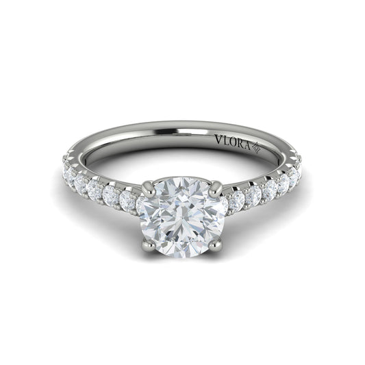 14K White Gold Round Diamond Asymmetric Engagement Ring