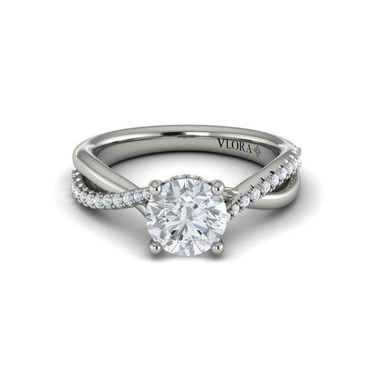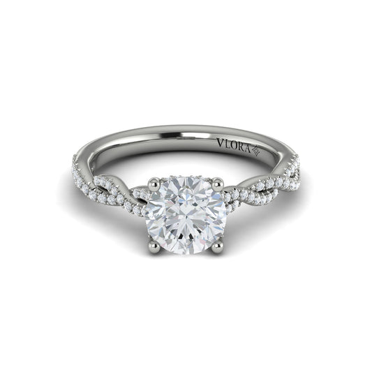 14K White Gold Twist Diamond Hidden Halo Engagement Ring