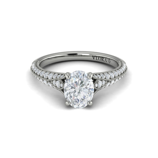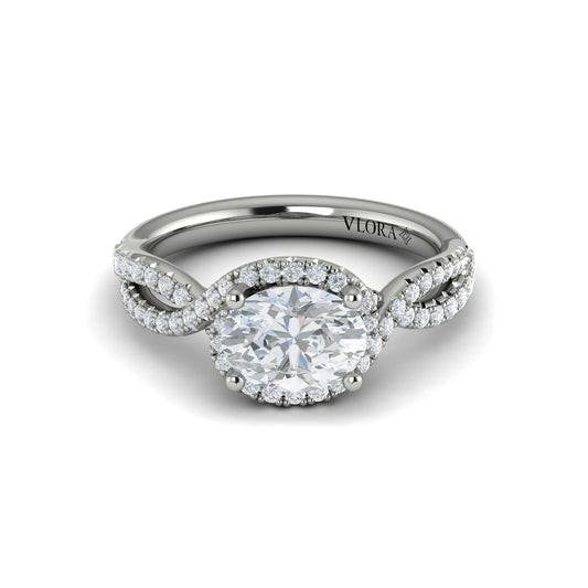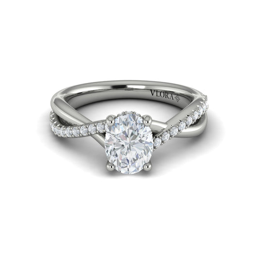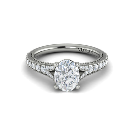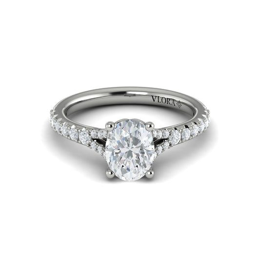14K White Gold Oval Diamond Split Shank Engagement Ring