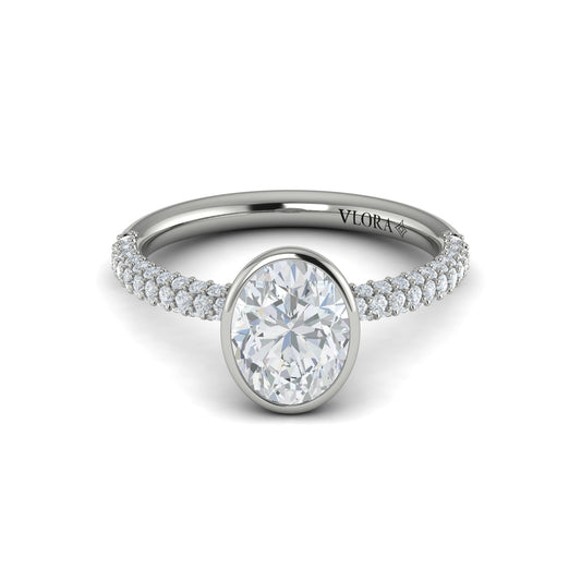 14K White Gold Oval Bezel Diamond Engagement Ring