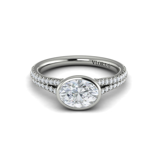 14K White Gold Oval Diamond Bezel Split Shank Ring