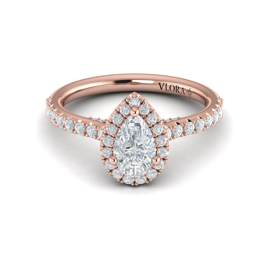 14K Rose Gold Pear Diamond Halo Engagement Ring