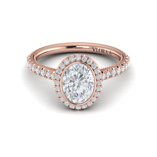 14K Rose Gold Oval Diamond Bezel Halo Engagement Ring