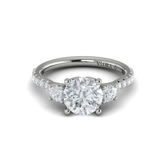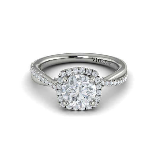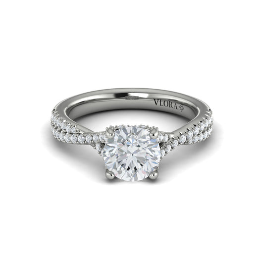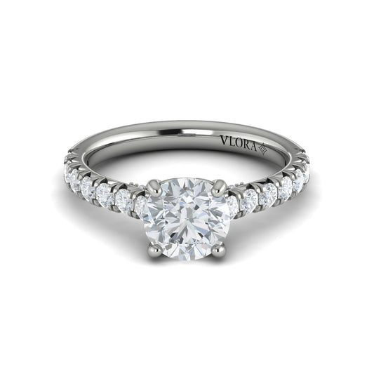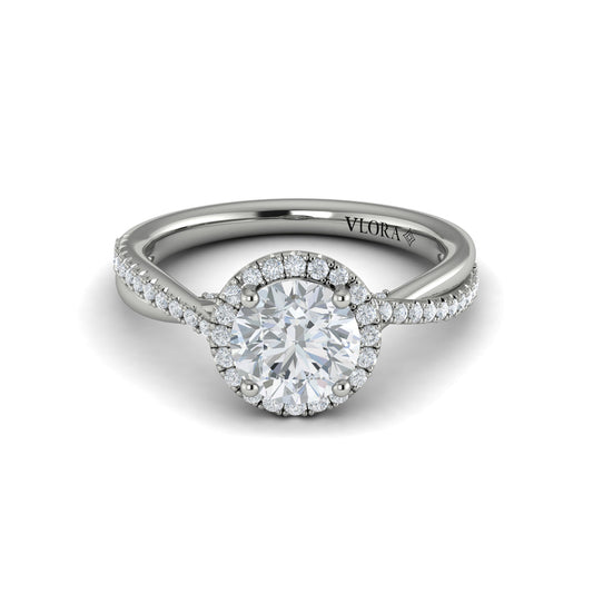14K White Gold Woven Pave Round Diamond Engagement Ring