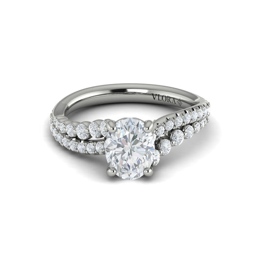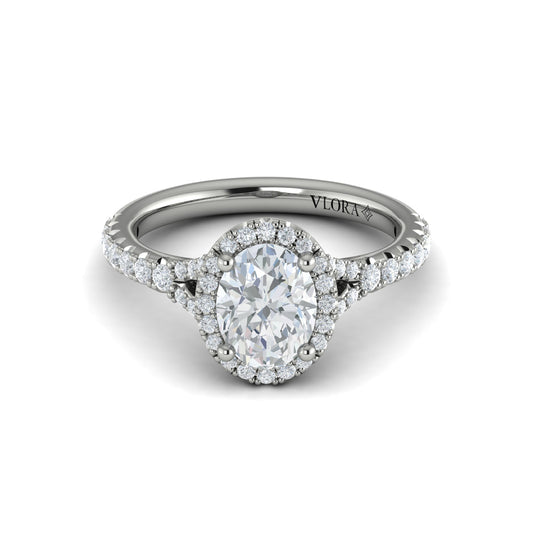 14K White Gold Oval Diamond Halo Split Shank Ring