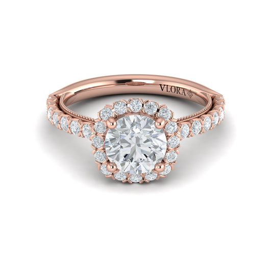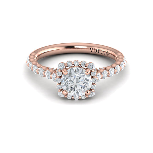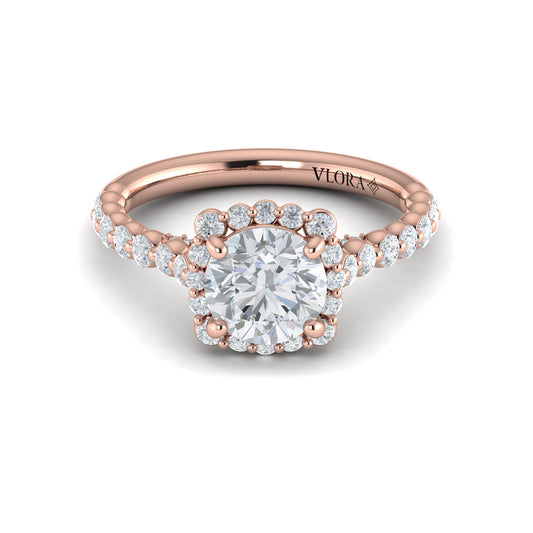 14K Rose Gold Floral Halo Round Diamond Engagement Ring