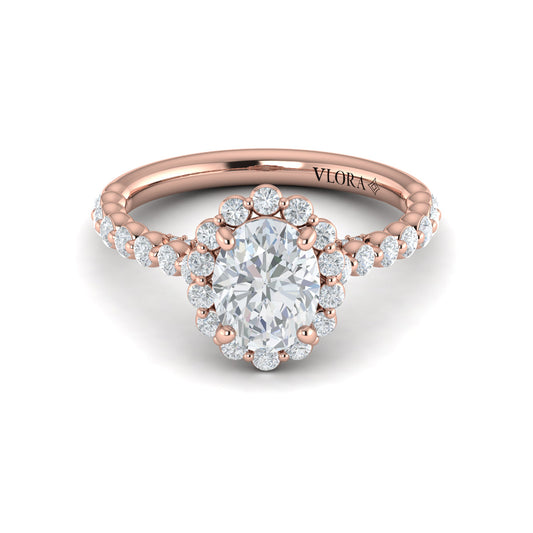14K Rose Gold Oval Diamond Floating Halo Engagement Ring