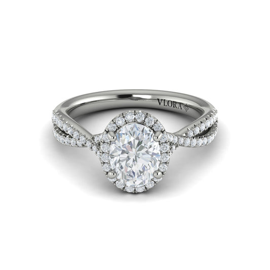 14K White Gold Oval Diamond Intertwined Halo Engagement Ring