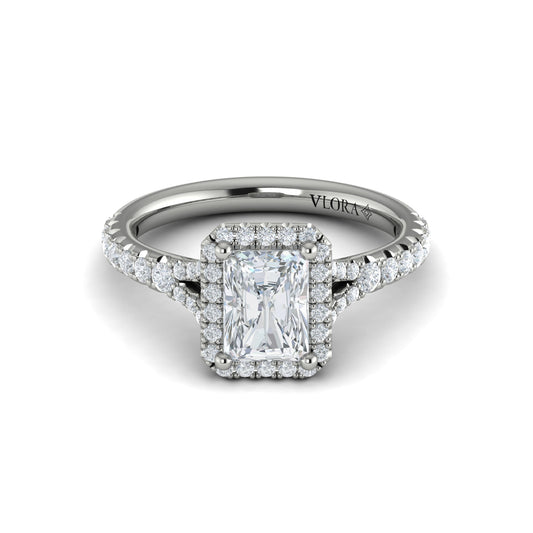 14K White Gold Emerald Cut Diamond Halo Engagement Ring