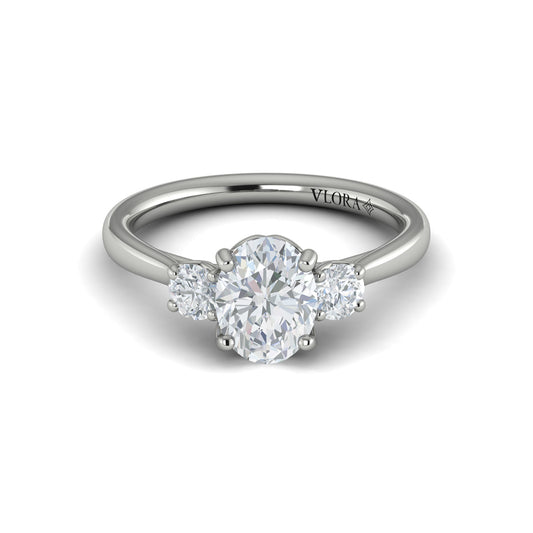 14K White Gold Oval Diamond Three-Stone Engagement Ring