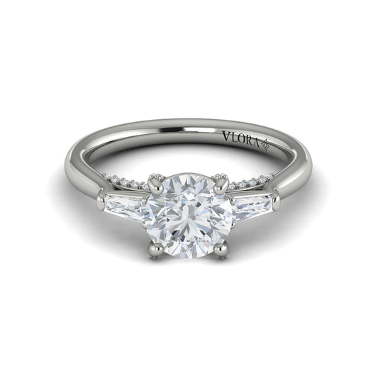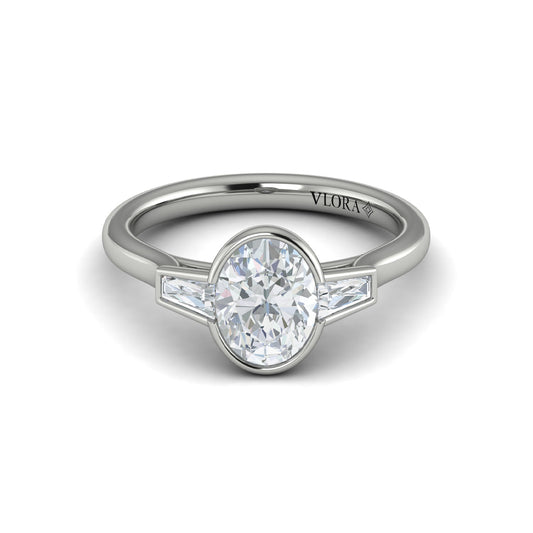 14K White Gold Oval Three-Stone Bezel Engagement Ring