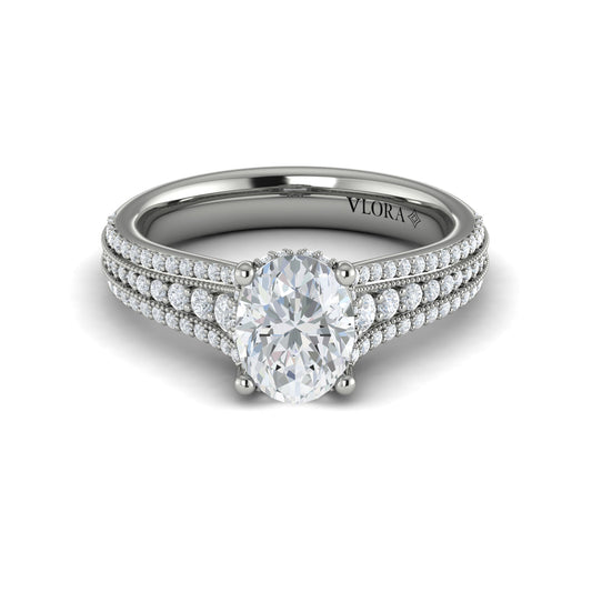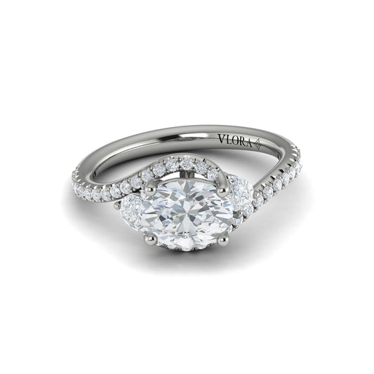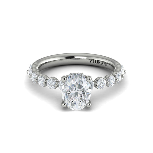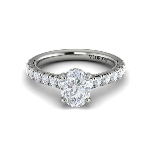 14K White Gold Oval Diamond Hidden Halo Engagement Ring