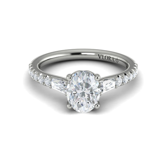 14K White Gold Oval Diamond Three-Stone Engagement Ring