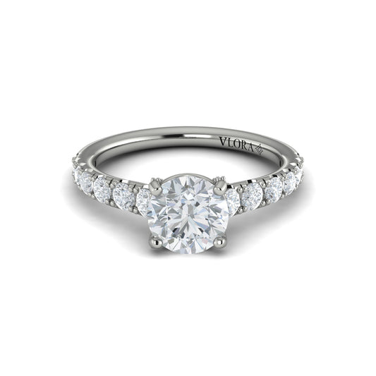 14K White Gold Round Diamond Cathedral Engagement Ring