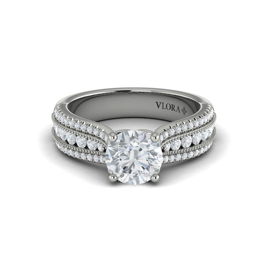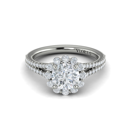 14K White Gold Round Diamond Hidden Halo Engagement Ring
