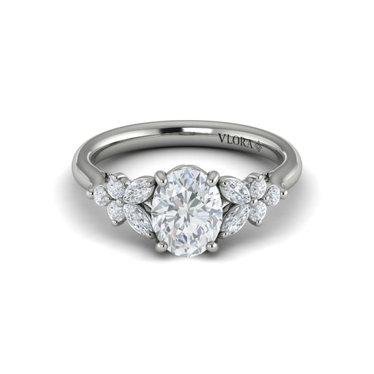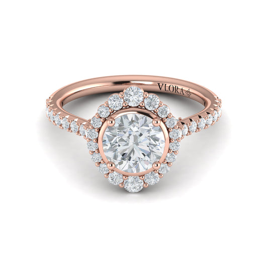14K Rose Gold Oval Diamond Floral Halo Engagement Ring