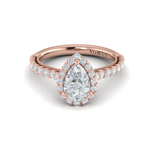 14K Rose Gold Pear Diamond Vintage Halo Engagement Ring
