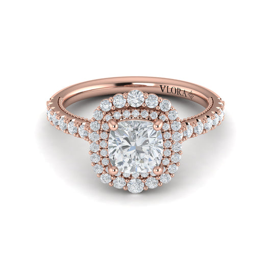 14K Rose Gold Cushion Double Halo Engagement Ring
