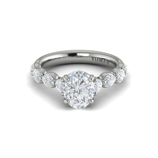 14K White Gold Oval Diamond Cascade Engagement Ring