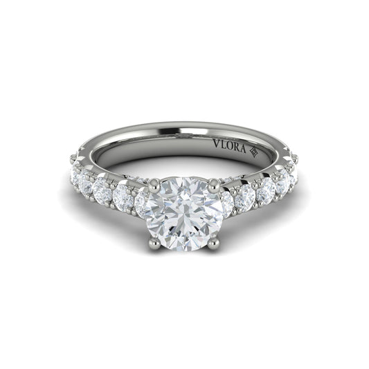 14K White Gold Cathedral Diamond Hidden Halo Ring