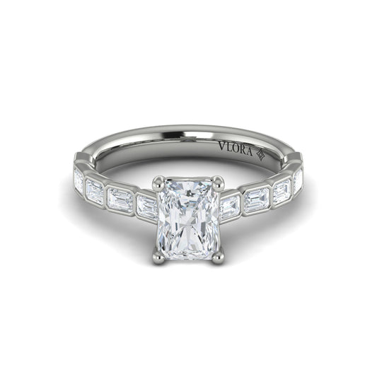 14K White Gold Emerald Cut Diamond Bezel Engagement Ring