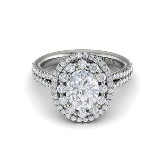 14K White Gold Oval Diamond Double Halo Engagement Ring